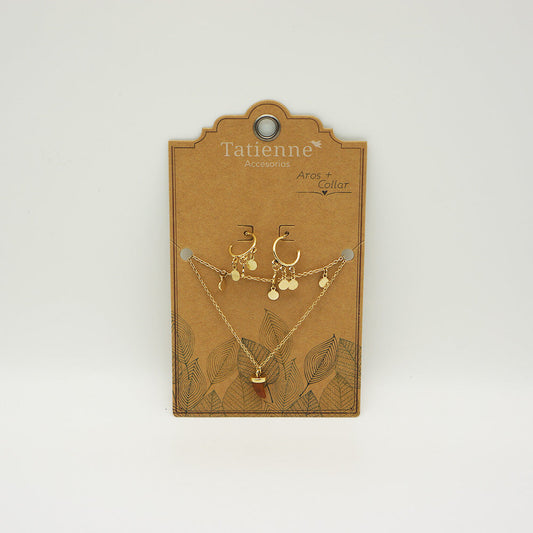 Pack Aros + Collar Colmillo Bronce Tatienne