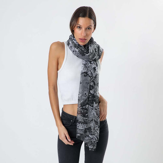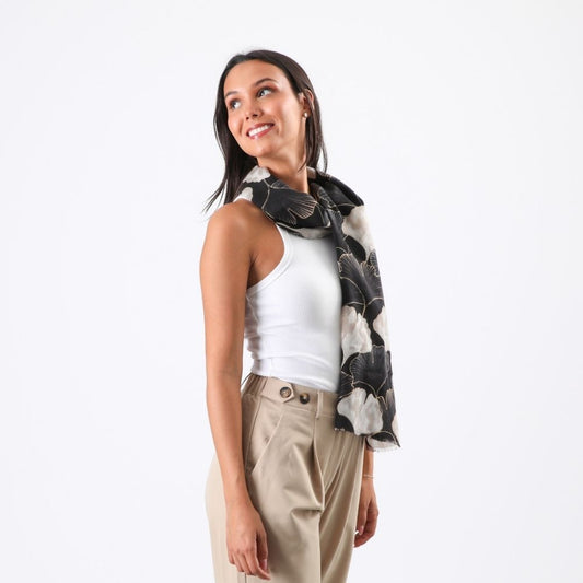 Pañuelo Estampado Elena Gingko Negro Tatienne