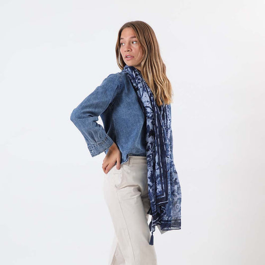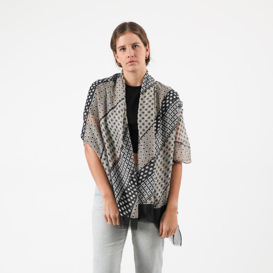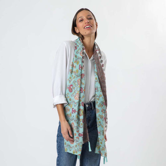 Pañuelo Estampado Rike Borlas Beige Tatienne