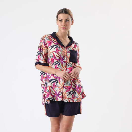 Pijama Corto Set Blossoming Rosado Talla M Humana