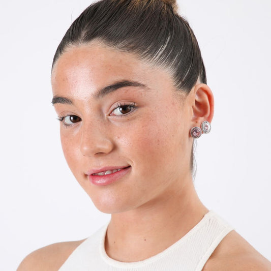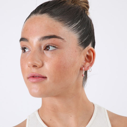 Set De 2 Aros Ruby Piedras Dorado Humana