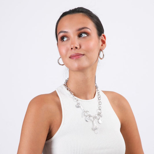 Set De Collar Y Aros Icons Plateado Humana
