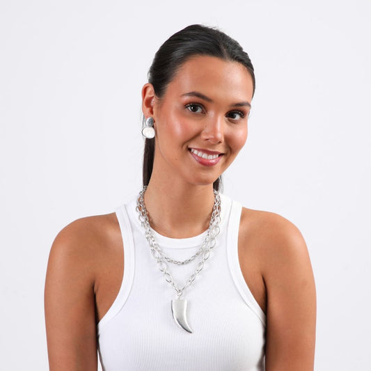 Set de Collar y Aros Tooth Plateado Humana