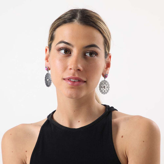 Aros Mediano Retro Plateado Humana
