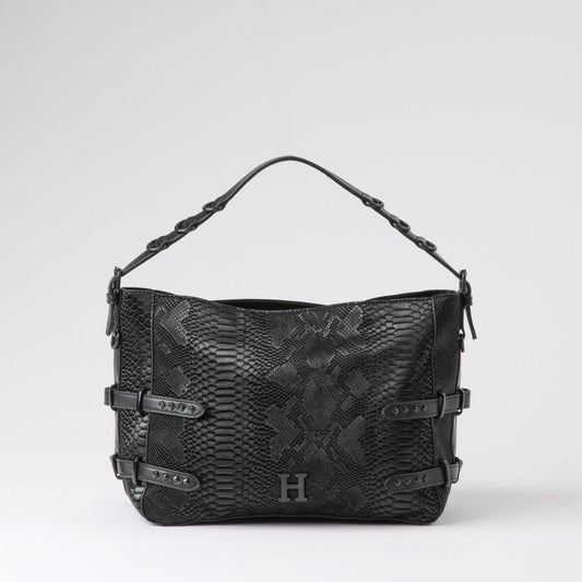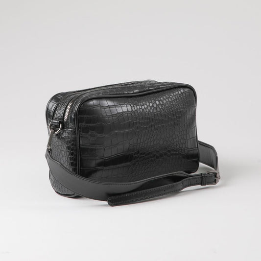 Cartera Tote Bella Ecocuero Croco Negro Humana