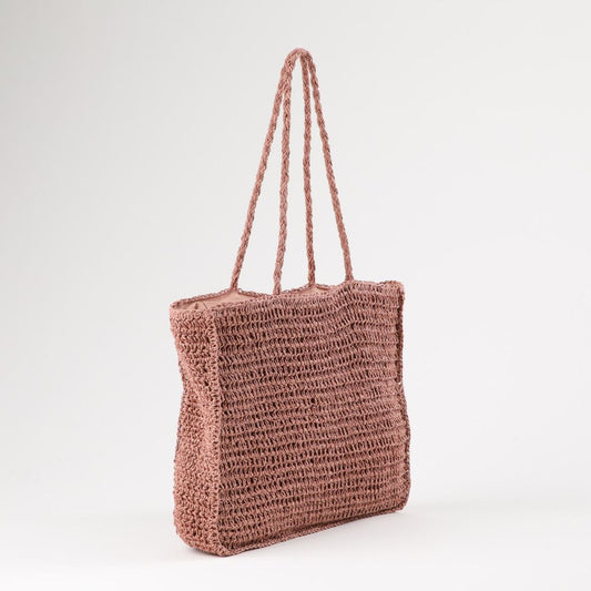 Cartera Tote Mila Tipo rafia tejida rosa Playa Humana