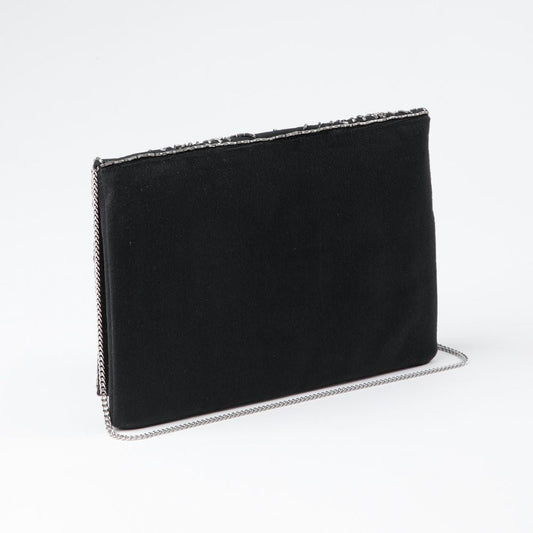 Cartera De Fiesta Bordado Flor Negro Humana