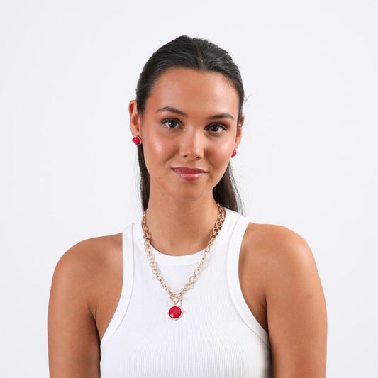 Set Collar y Aros Ruby Dorado Humana