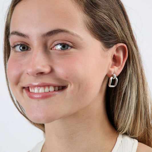 Aros Mediano Square Plateado Humana