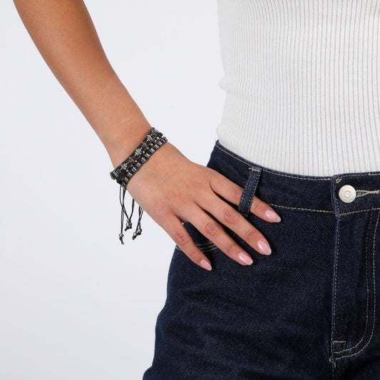 Set De 3 Pulseras Tejidas Negro Humana