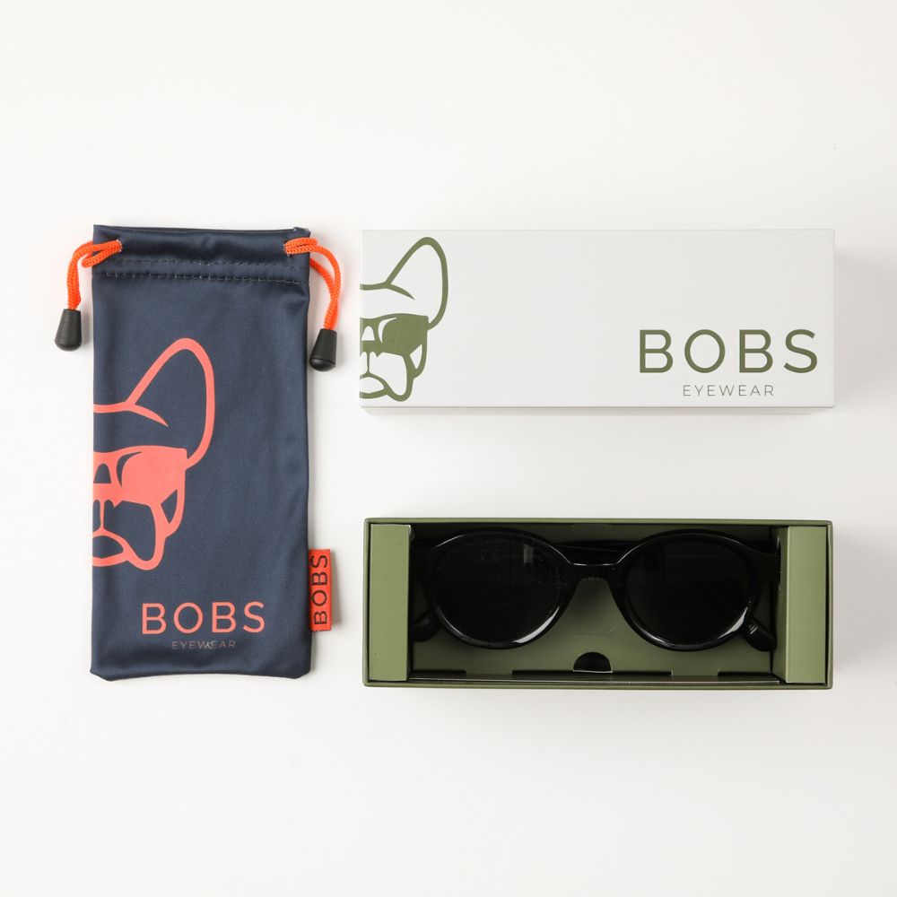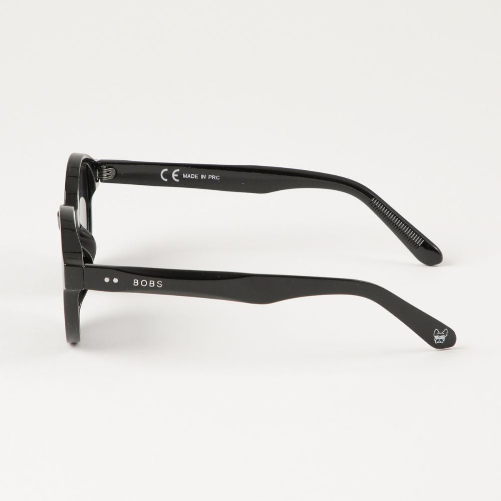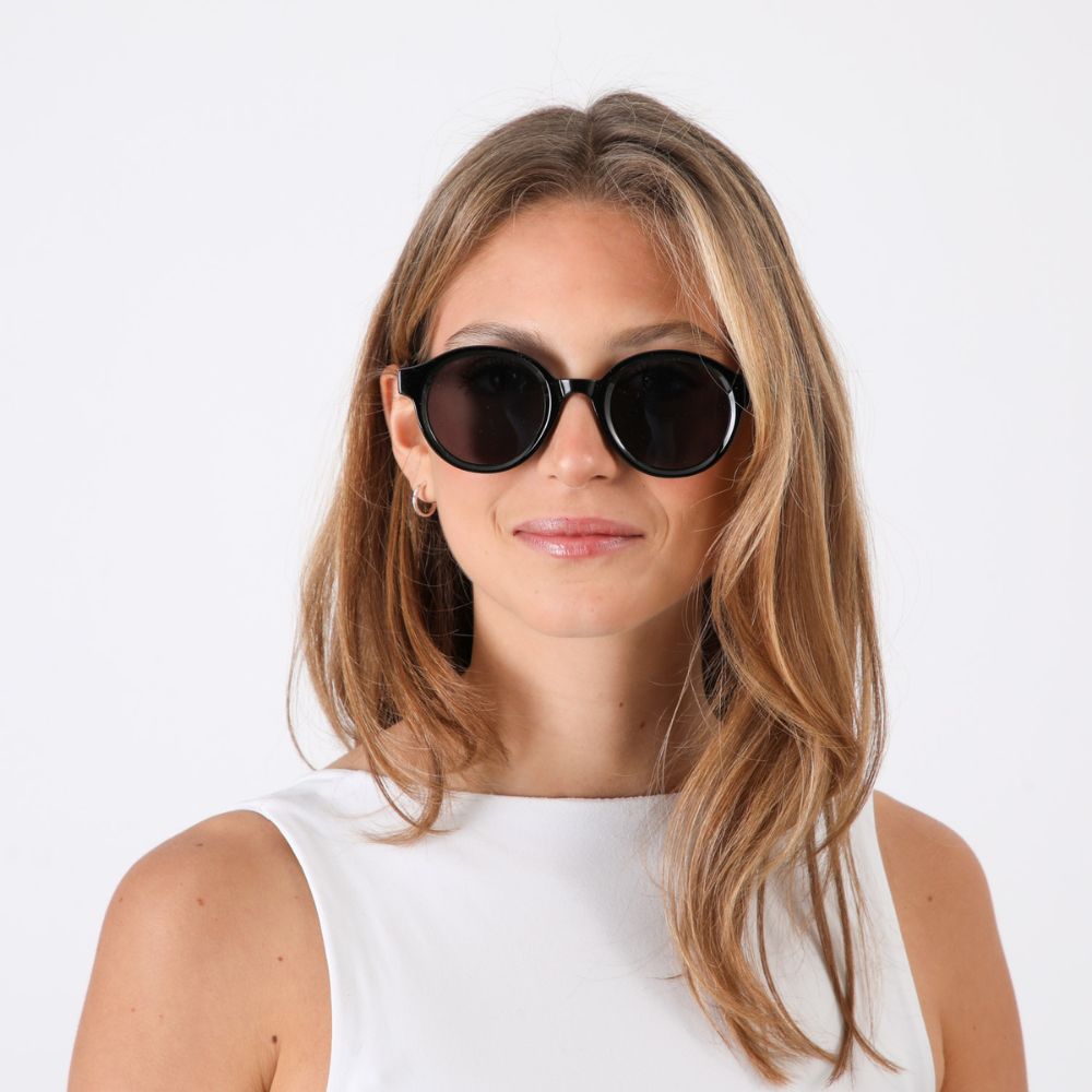 Anteojos de sol estilo "round eye" de montura y lente negro con filtro 400 UV.