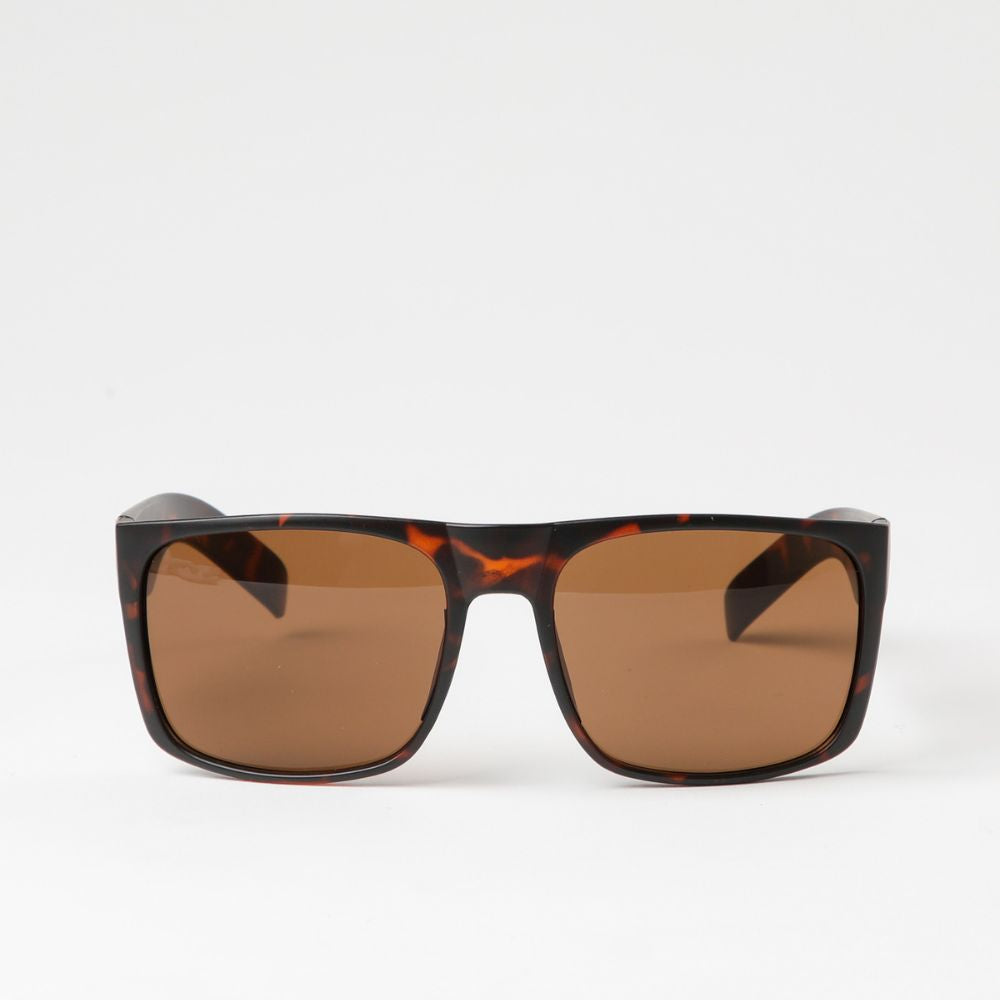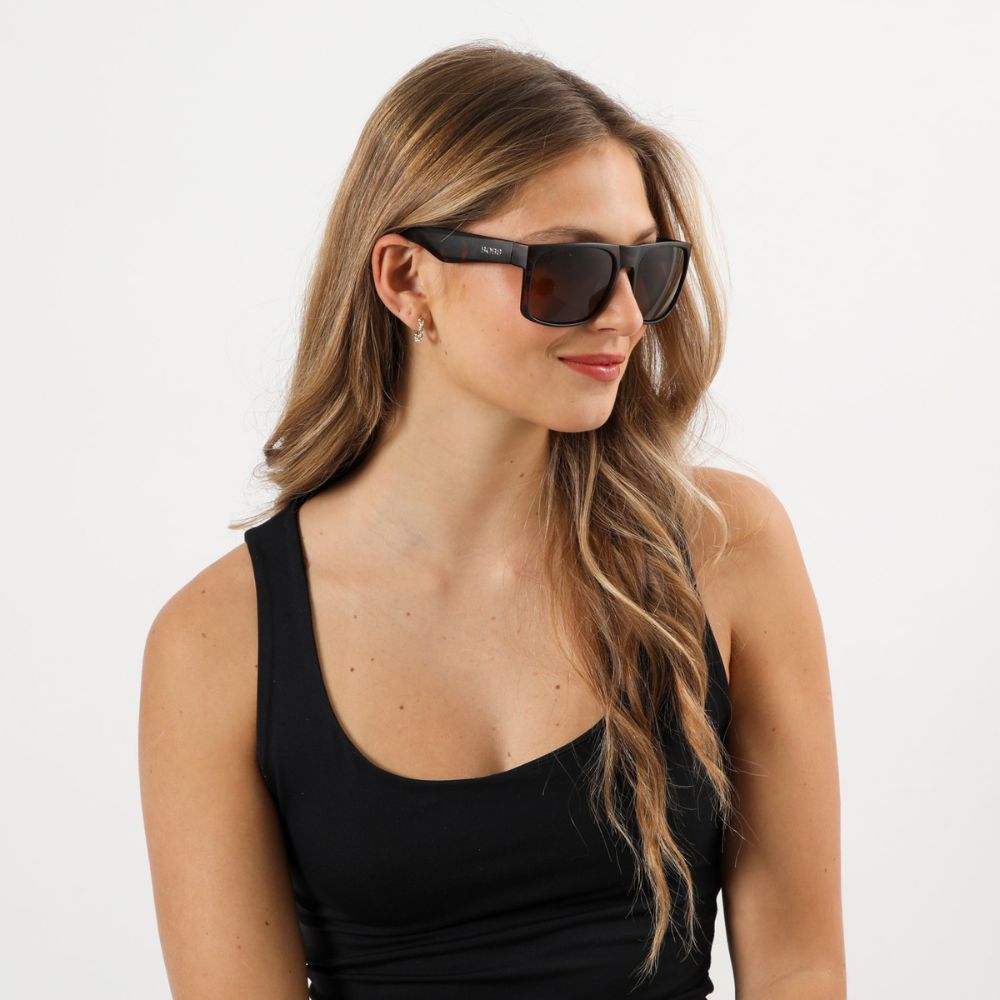 Anteojos de sol Coron Brown estilo "wrap" con montura en acabado carey de tonalidades cafés. Lente en color café.