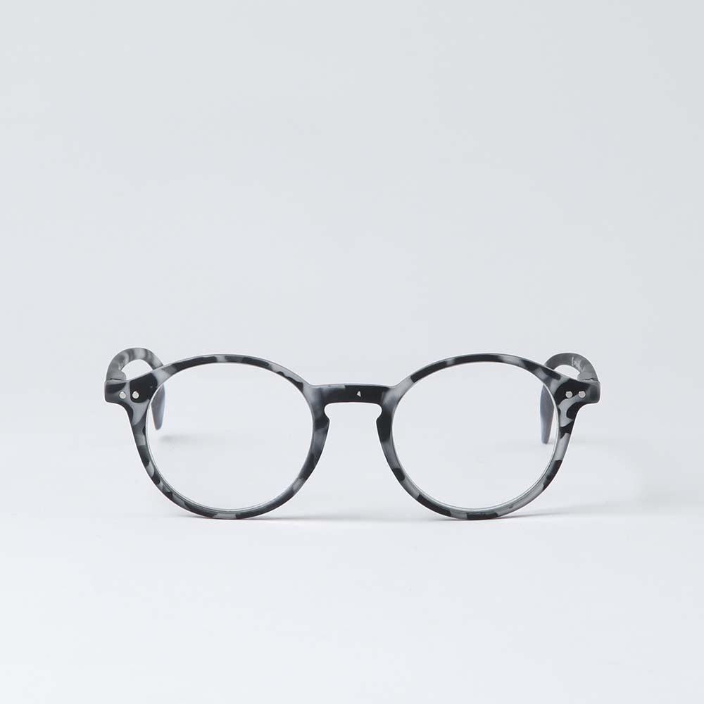 Anteojos con marco redondo delgado. Anteojos ópticos con acabado carey en negro y blanco. Sus lentes cuentan con diotropía 2.5