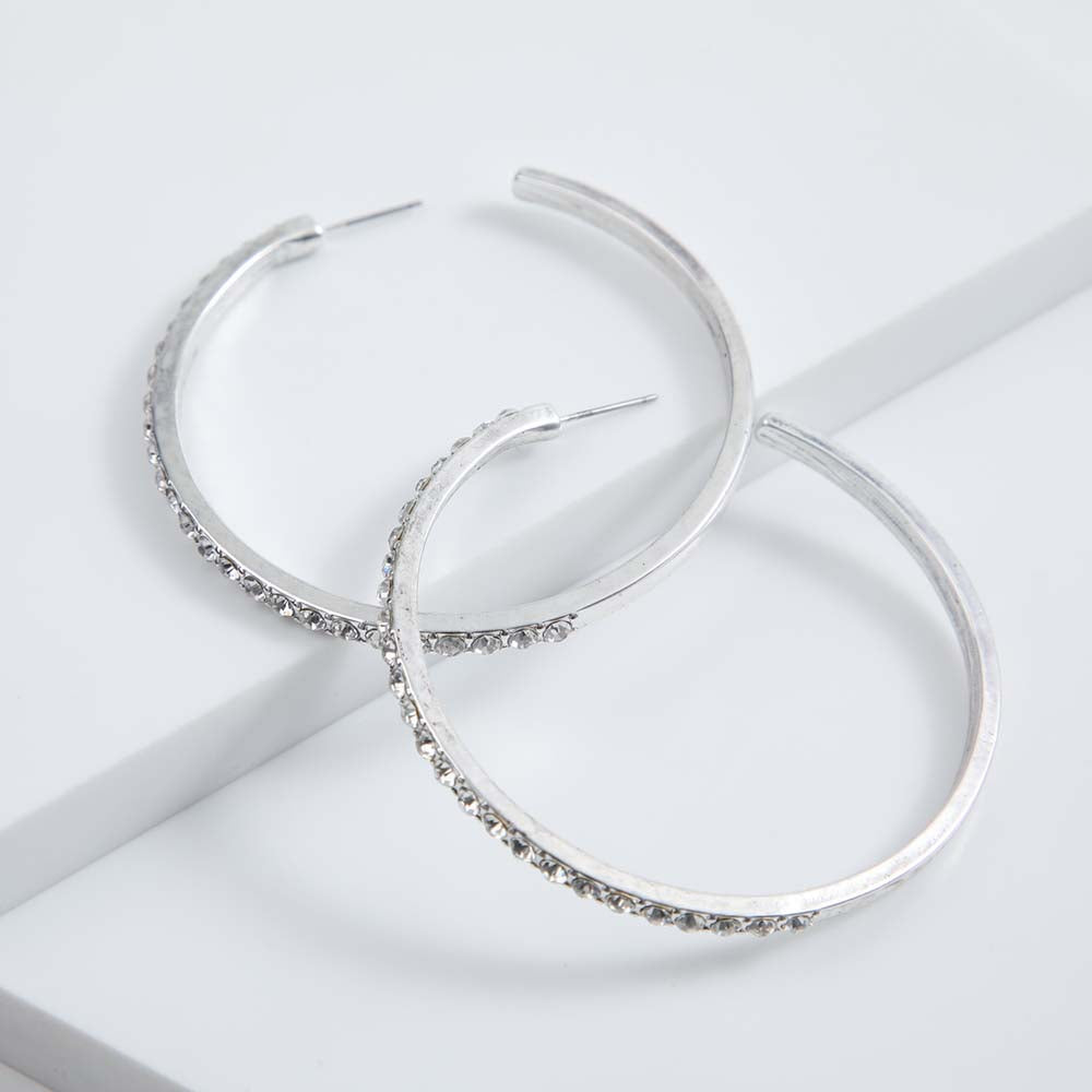 Argolla i-D Tyler de color plateado. Tiene detalles en brillantes transparentes.