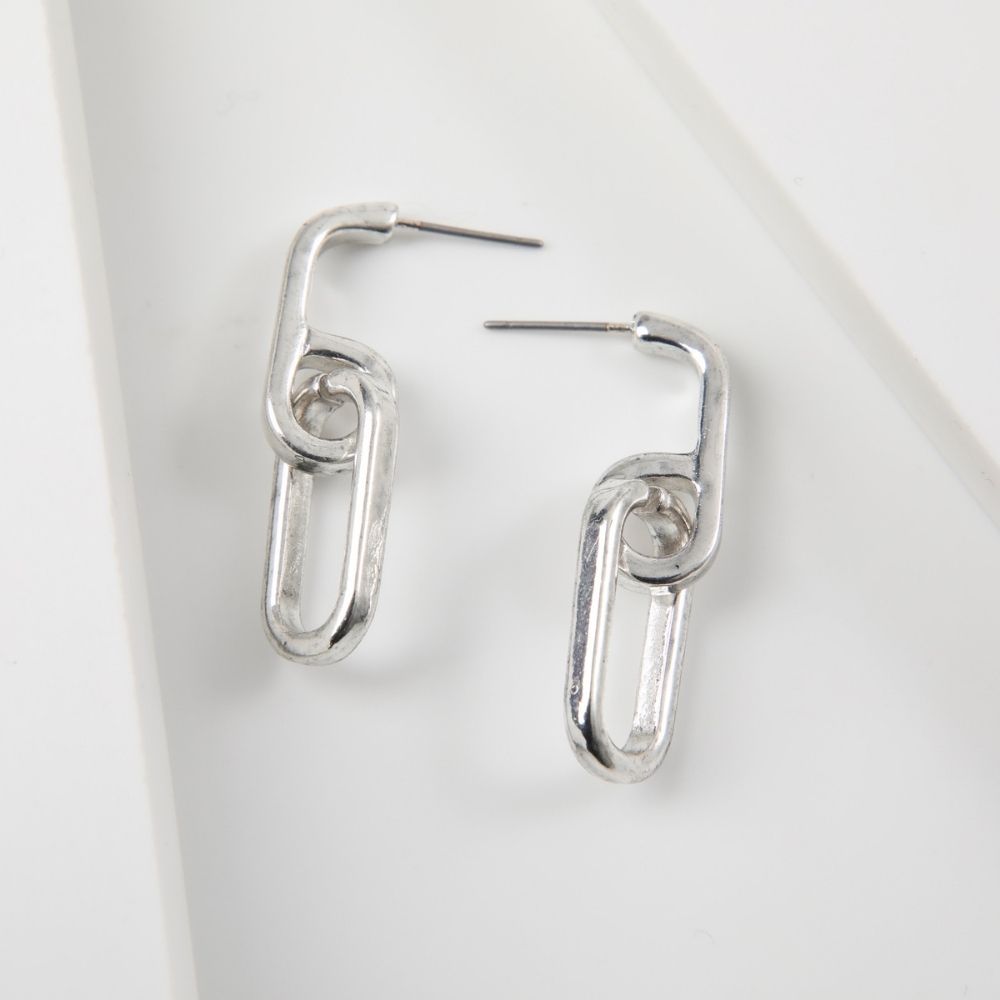 Aro pegado mediano de doble eslabon grueso plateado