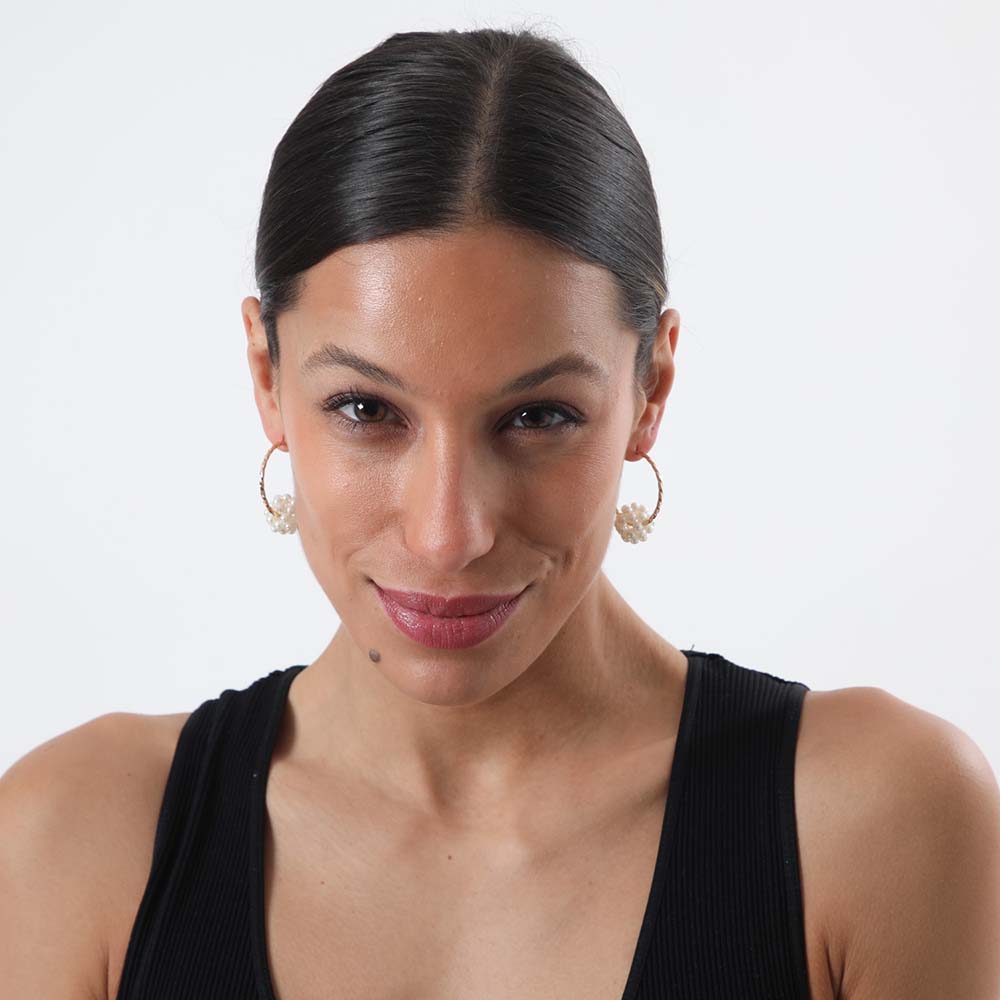 Aro Argolla i-D Ilhabela de color dorado. Un par de argollas torcidas con perlitas.