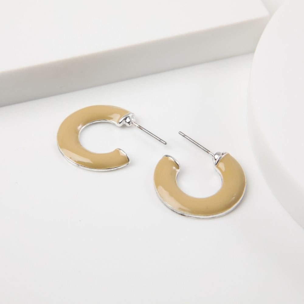 Aros de argolla color beige grueso con fondo plateado