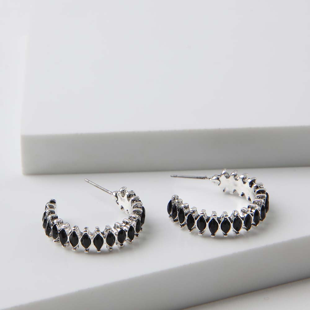 Argollas plateadas con Piedra brillante de fantasía en color rojo