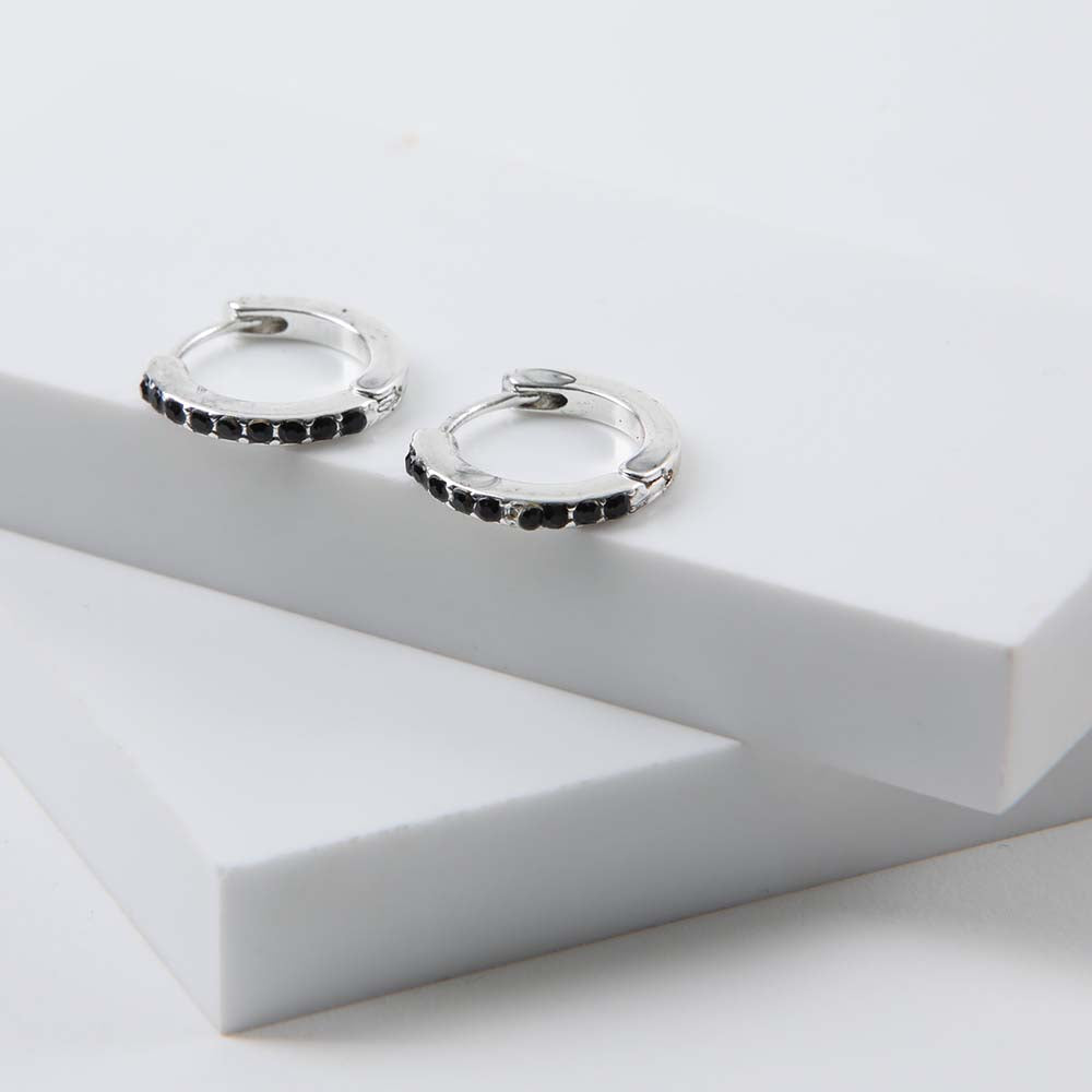 Argollas plateadas con Piedras brillantes de fanasía en color negro