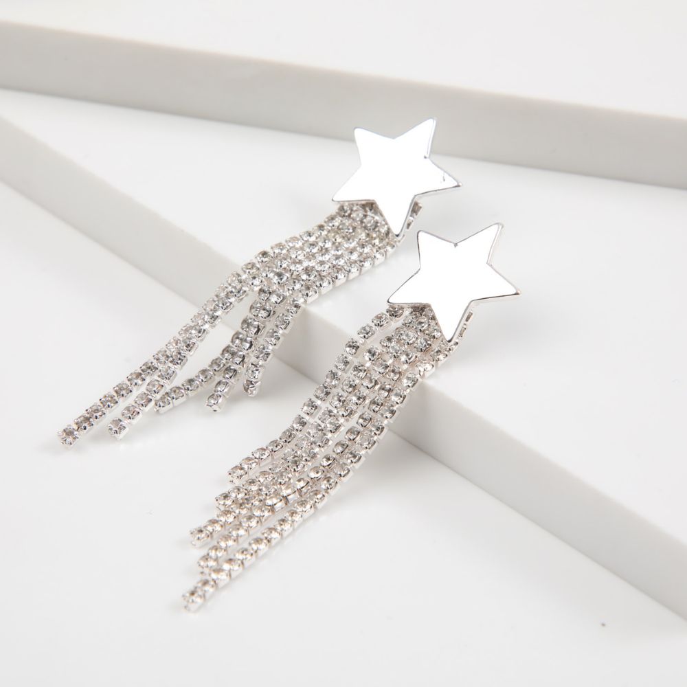 Aro largo pegado de estrella y flecos de brillan tes de fantasía.