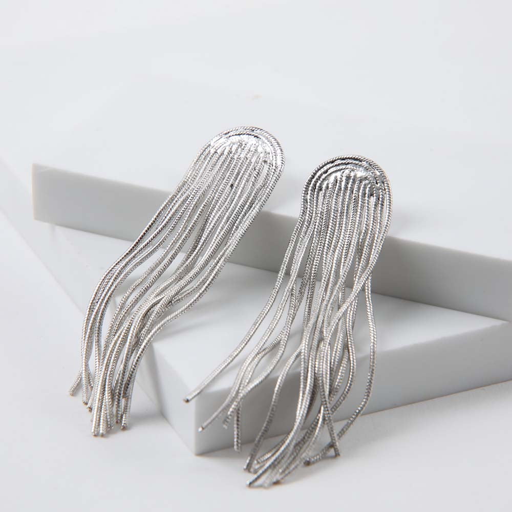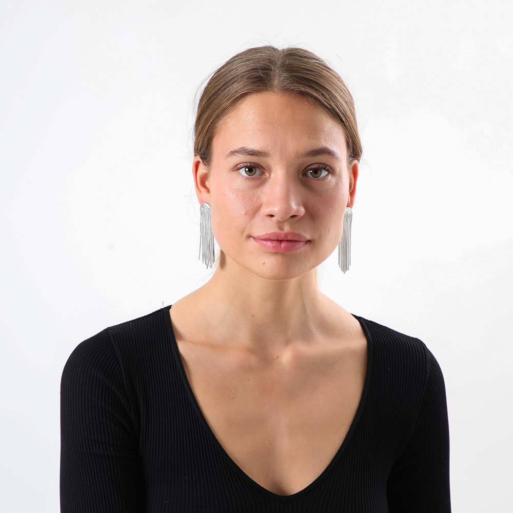Aros plateados colgantes compuesto de finas cadenas