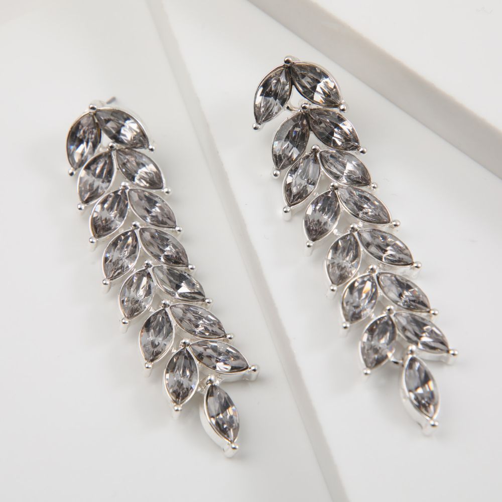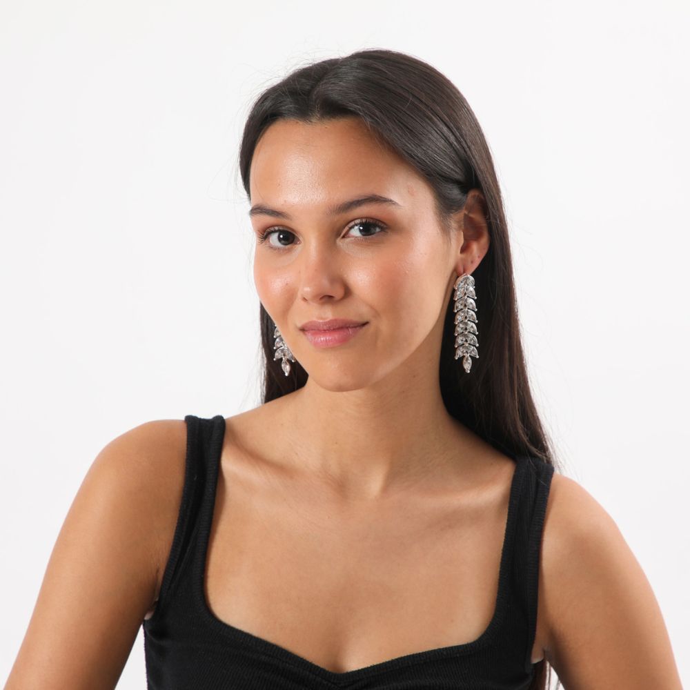 Aro largo pegado plateado de espigas con brillantes de fantasía.