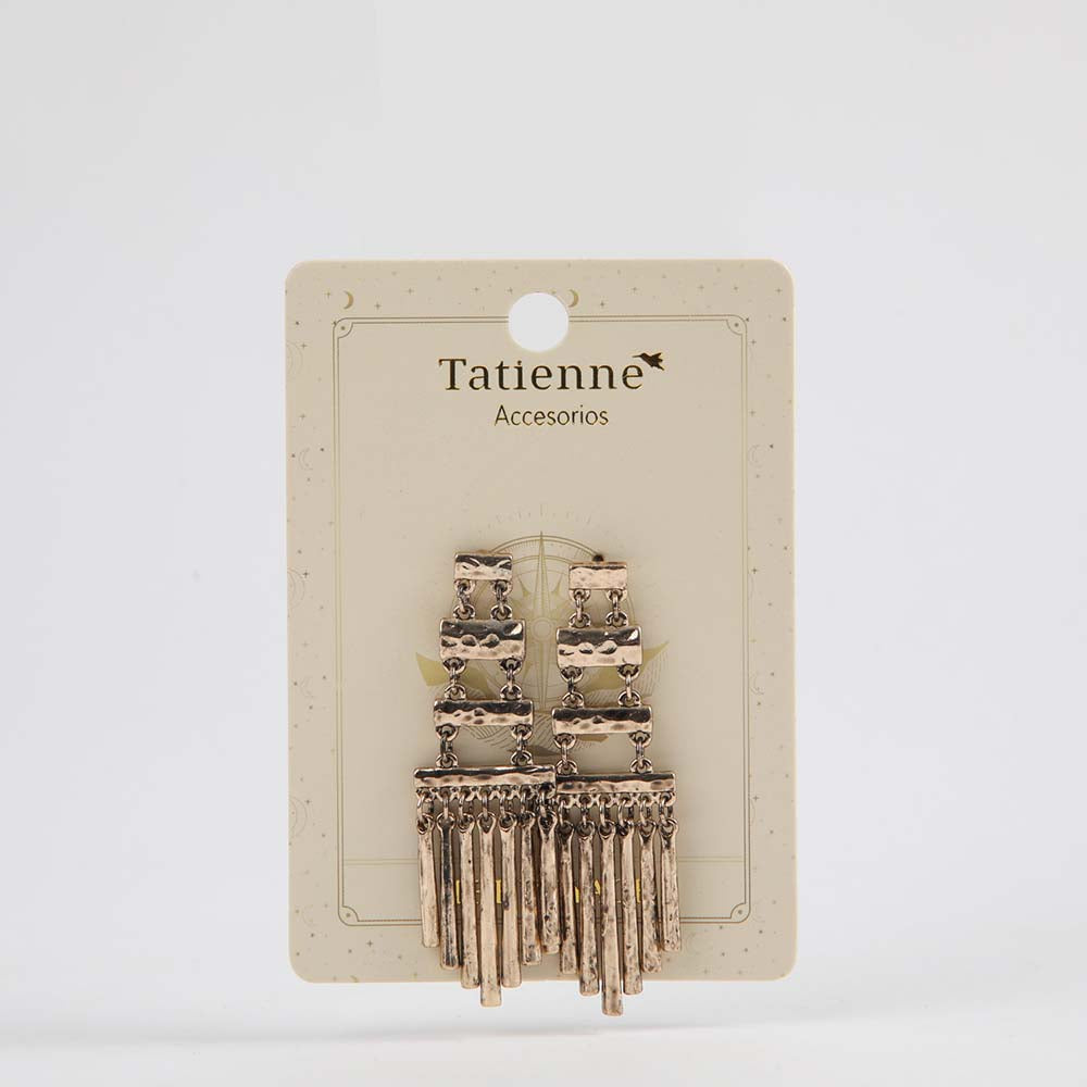 Aro Largo Tatienne Bidaia de color dorado perteneciente a la colección Voyage. Aros colgantes formados por rectángulos de diferentes tamaños unidos entre sí.