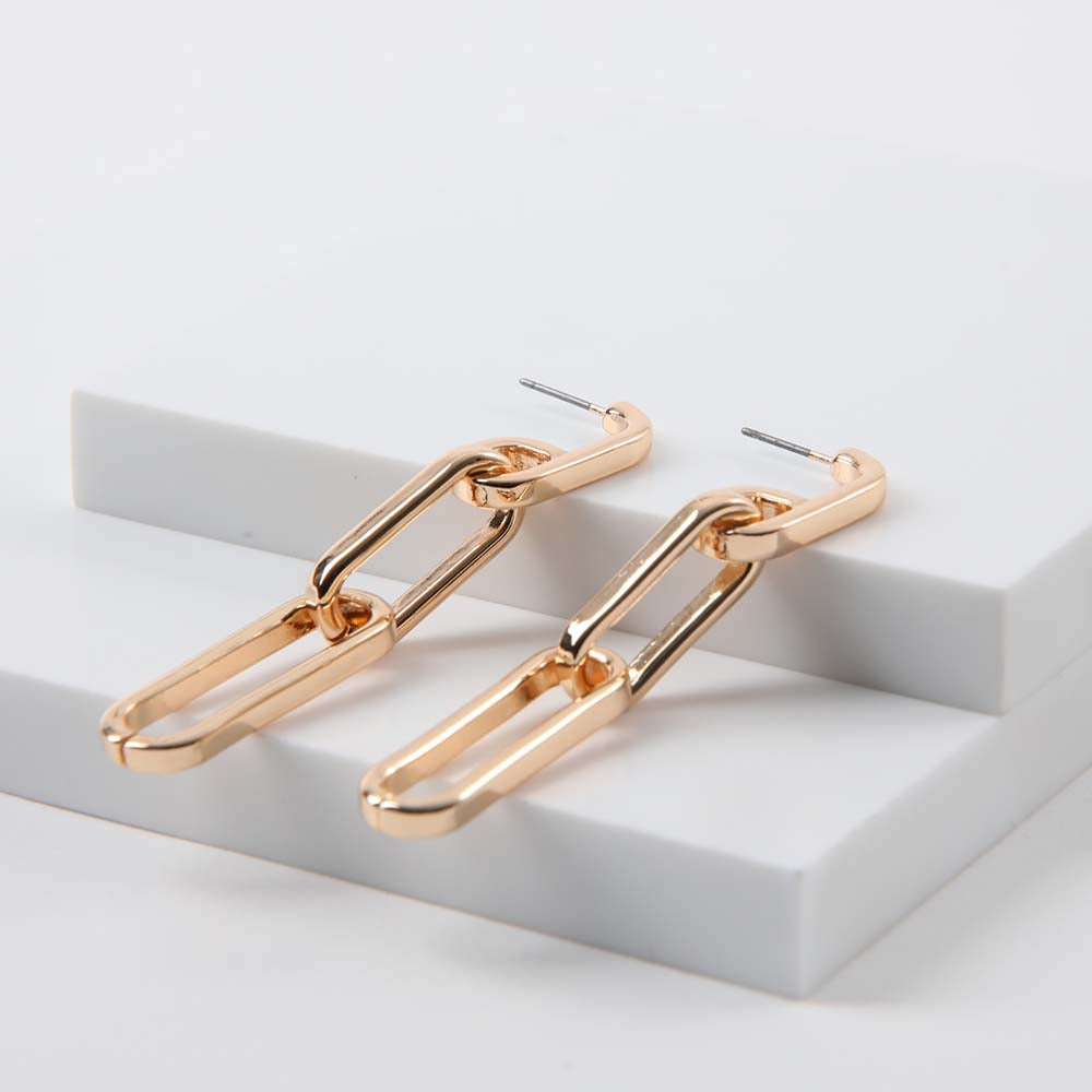 Aros colgantes de cadena con eslabones planos de color dorado.
