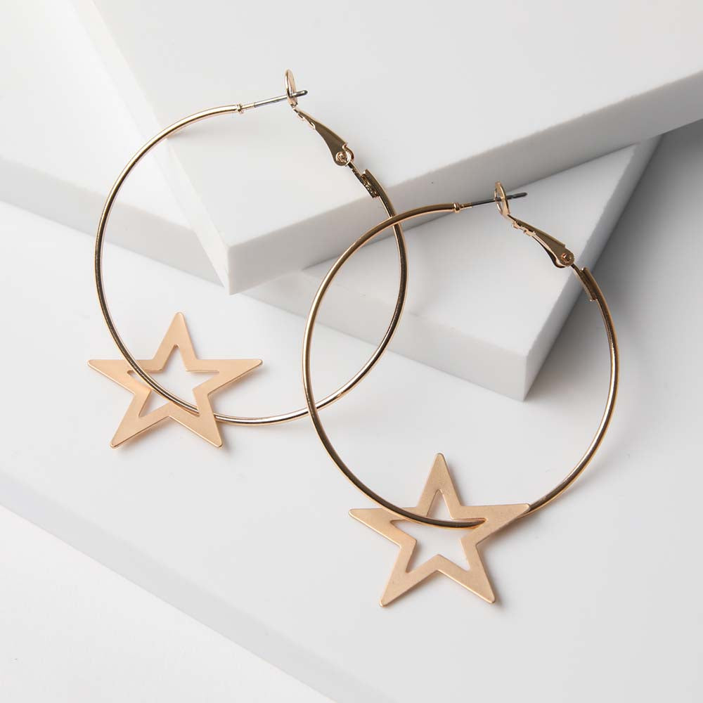 Aro Largo Essential Juliana, un top de esta temporada es tener argollas con una estrella colgante en formato grande. No puedes no tenerlo.