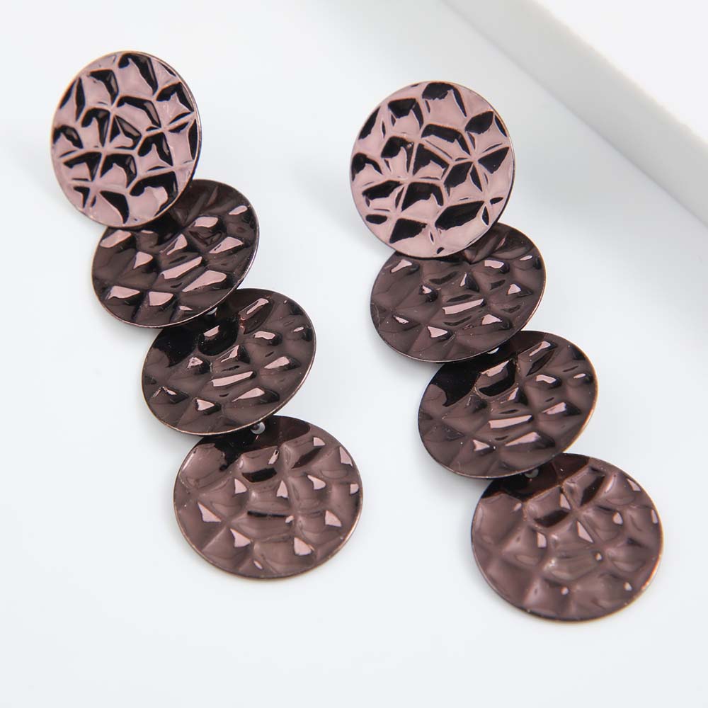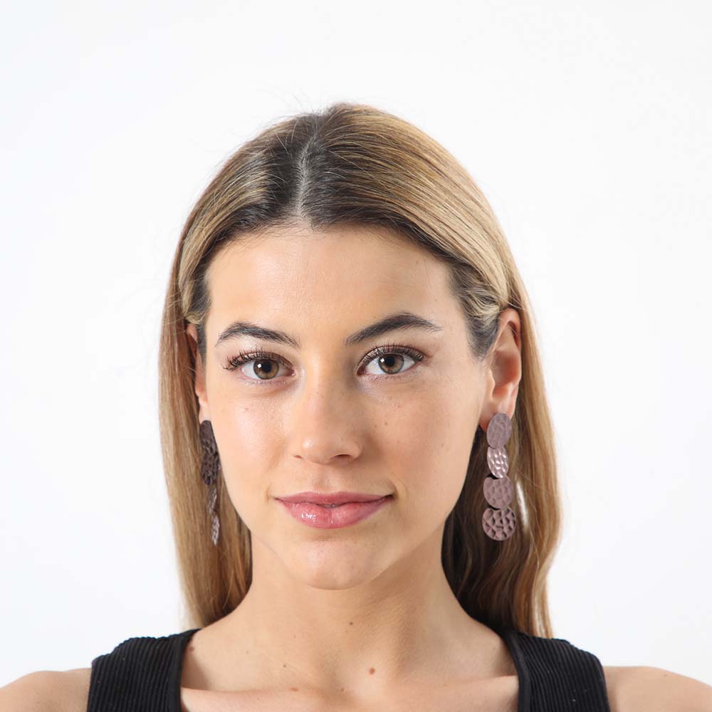 Aro Largo i-D Franz de color café. Aros colgantes formados por círculos con textura martillada unidos entre sí.