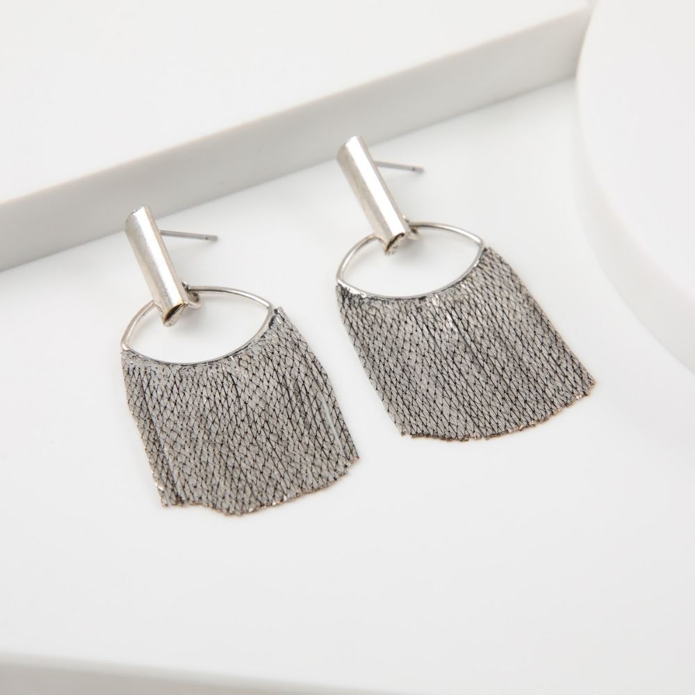 Aros plateados rectos con colgantes de cadena en circunferencia.