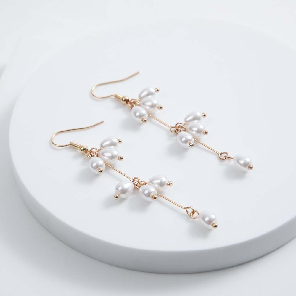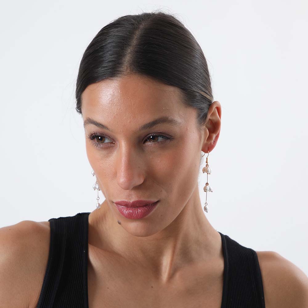 Aro Largo i-D Lanai de color dorado. Aros colgantes con perlas de fantasía.
