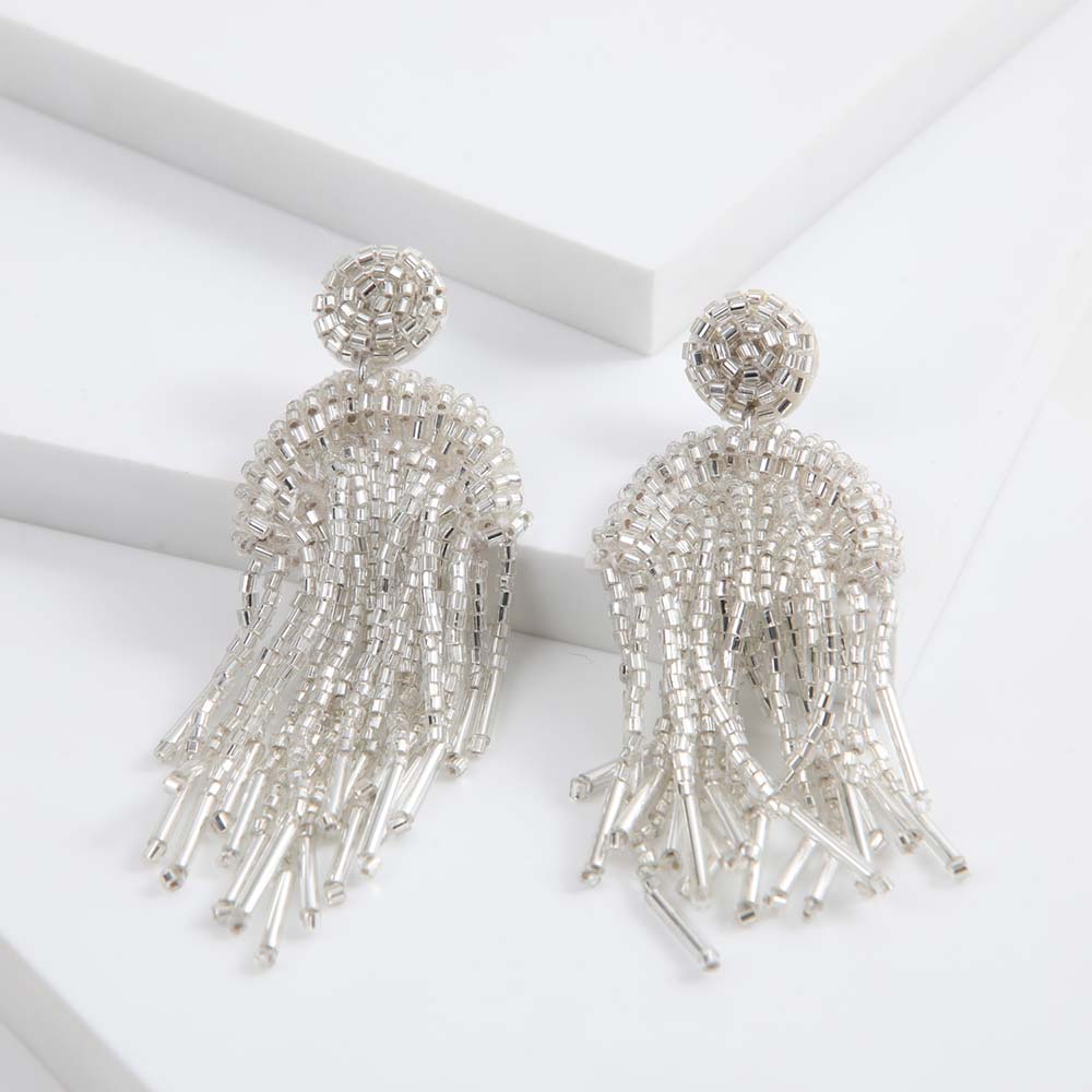 Aro formado por un semi circulo y tiras en Mostacillass en color dorado.