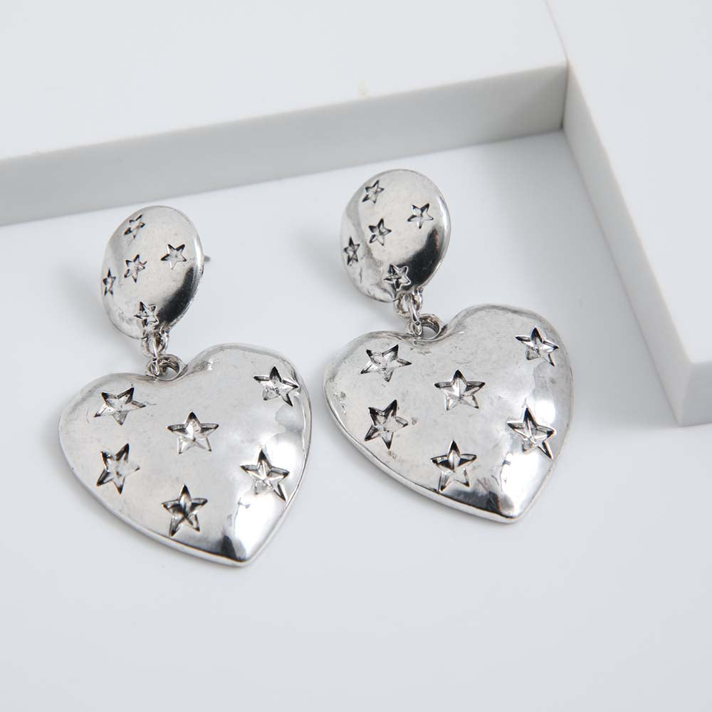 Aro iD Marissa largo plateado. Aro colgante con forma de corazón y piedras brillantes.