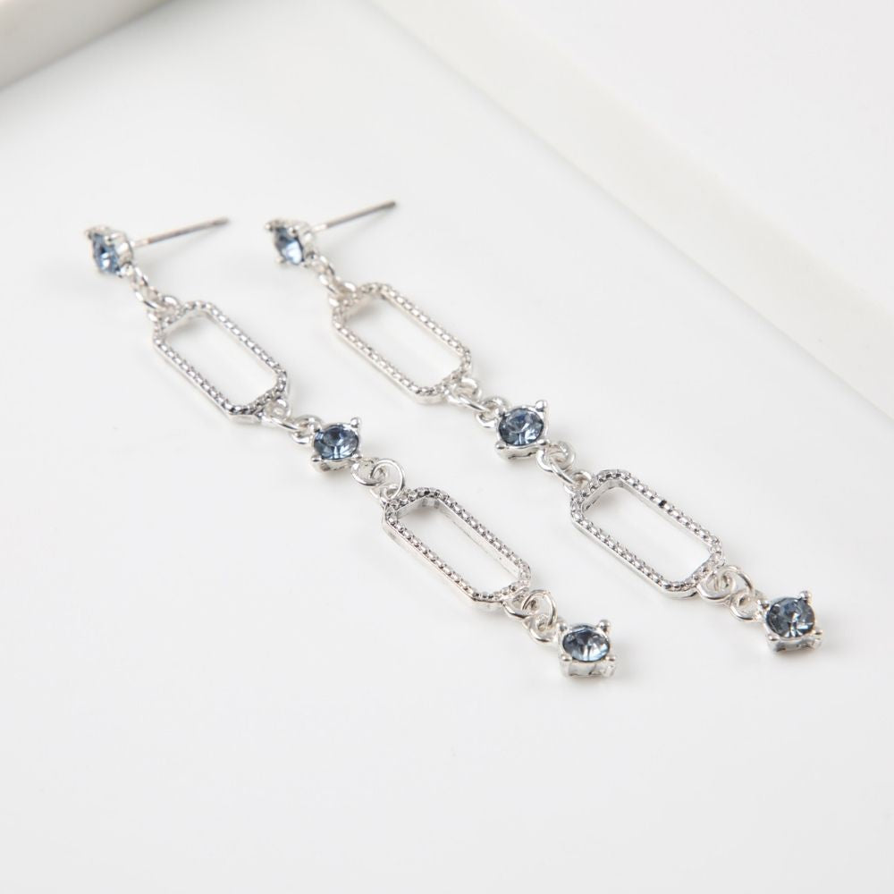 Aro largo de eslabones plateados texturados y brillantes de fantasía celestes.