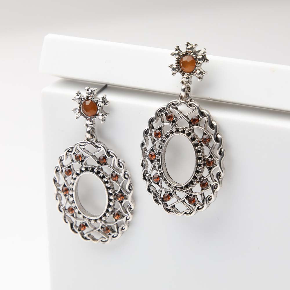Aros Largos Hmana Mind de color naranjo que pertenecen a la colección Boho Camel. Tiene detalles de piedras naranjas faceteadas.