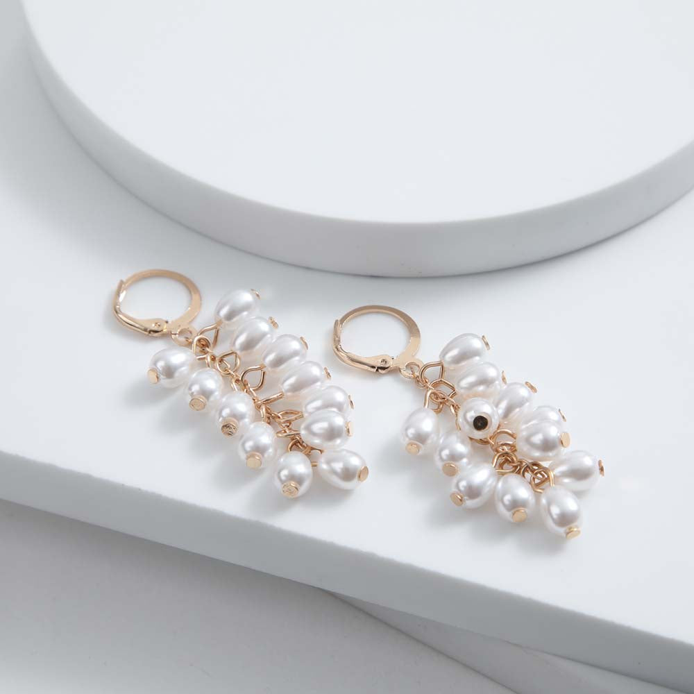 Aro Largo i-D Noosa de color dorado. Argollas doradas con línea de perlas de fantasía colgantes.
