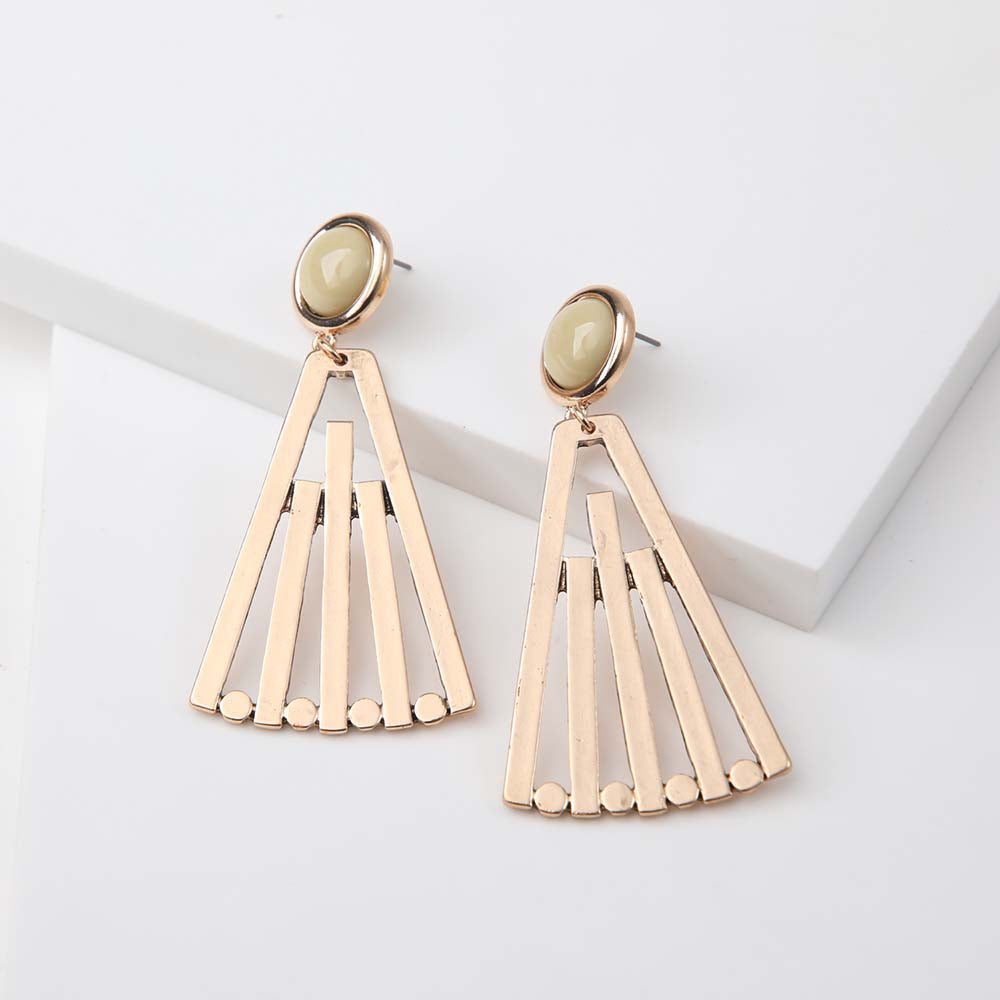 Aro Largo Humana de color verde perteneciente a la colección Nephrite Green. Aros con base circular de color verde de la que se desprende una figura geométrica de color dorado.