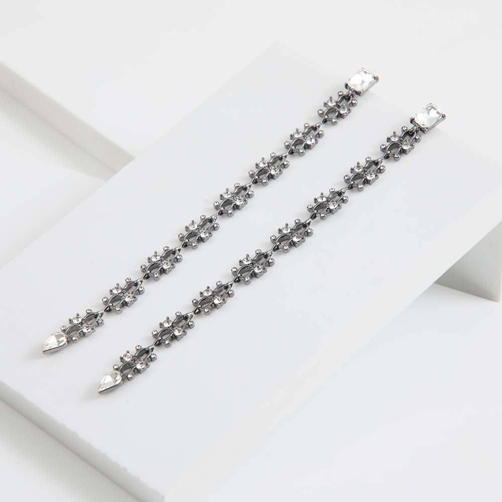 Aros colgantes con Piedras de fantasía birllantes plateadas