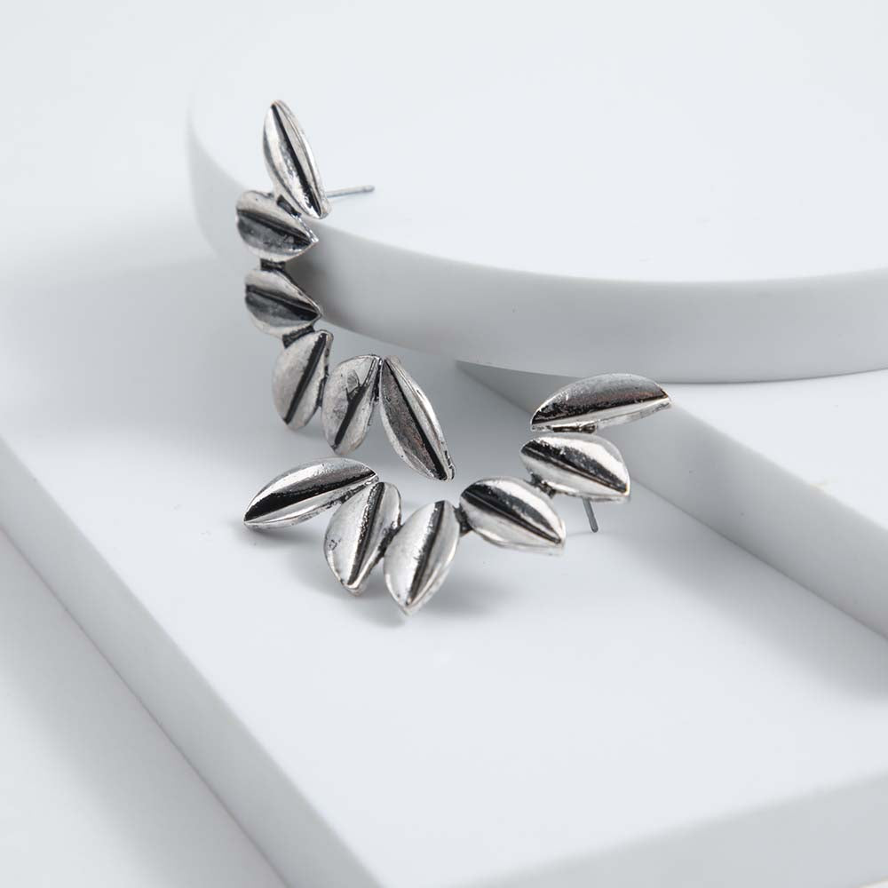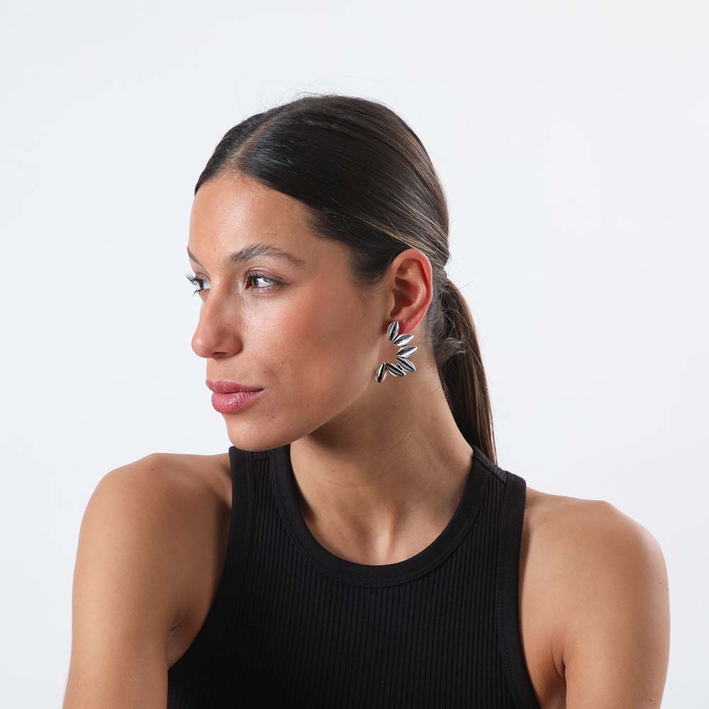 Aro Mediano Humana Drácena color plateado perteneciente a la colección Floral Nature. Aros con forma de C con hojas plateadas.