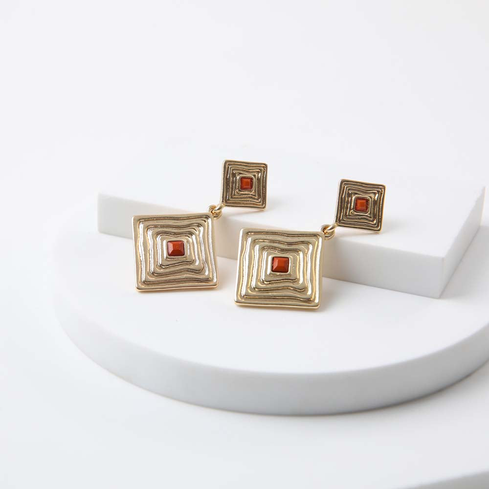 Aros colgantes dorados. Esta compuesto de dos cuadrados unidos diagonalmente entre si
