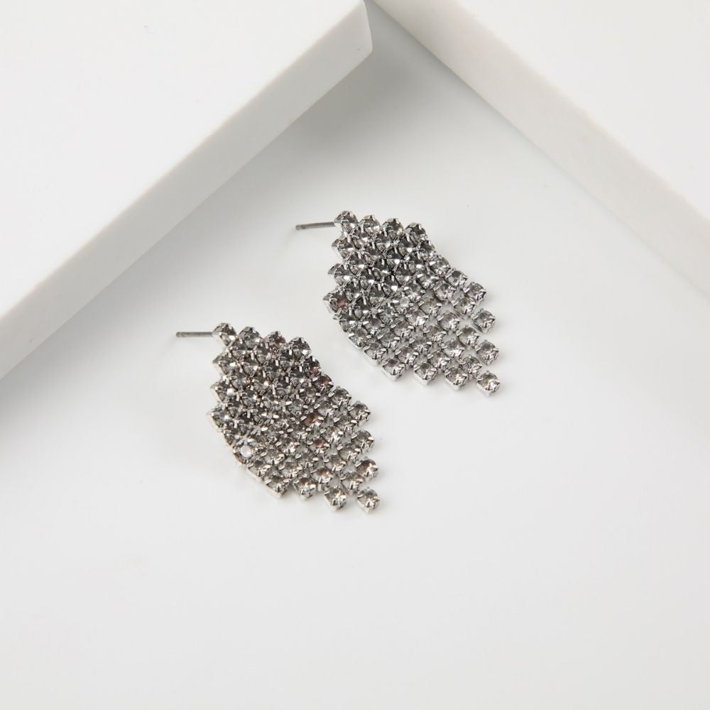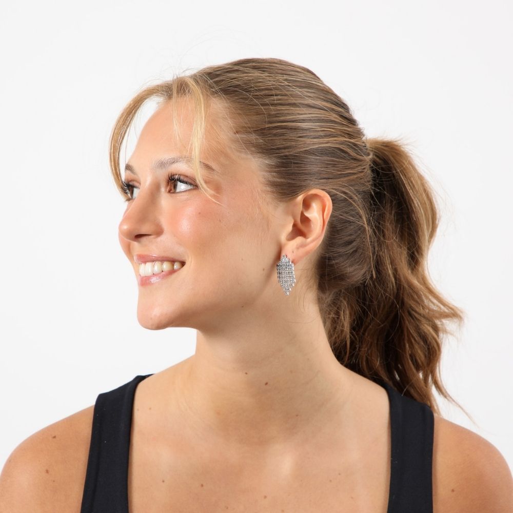Aros plateados con brillantes de fantasía en forma de escaleras.