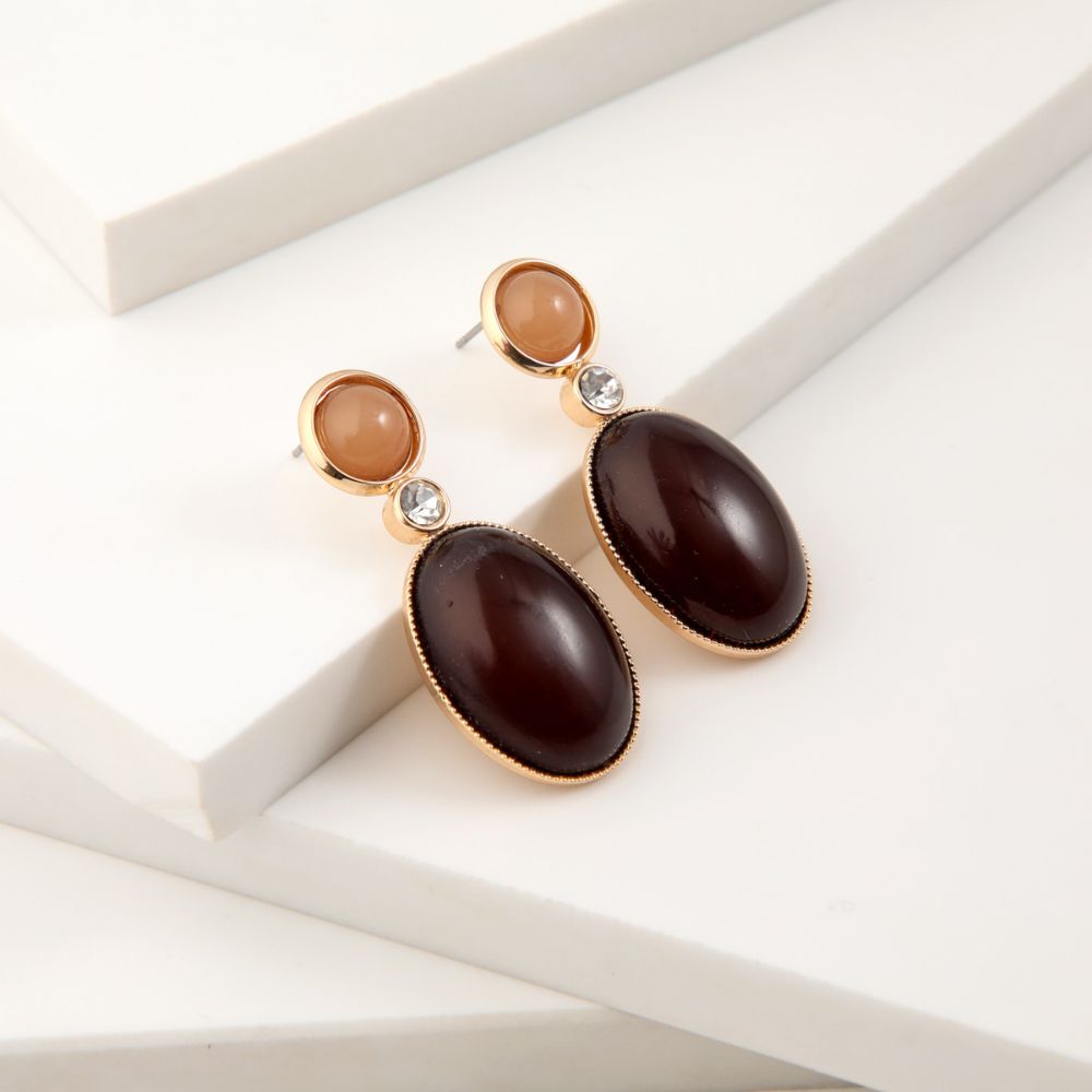 Aros medianos dorados con piedras de fantasía rosadas y moradas con brillante de fantasía.