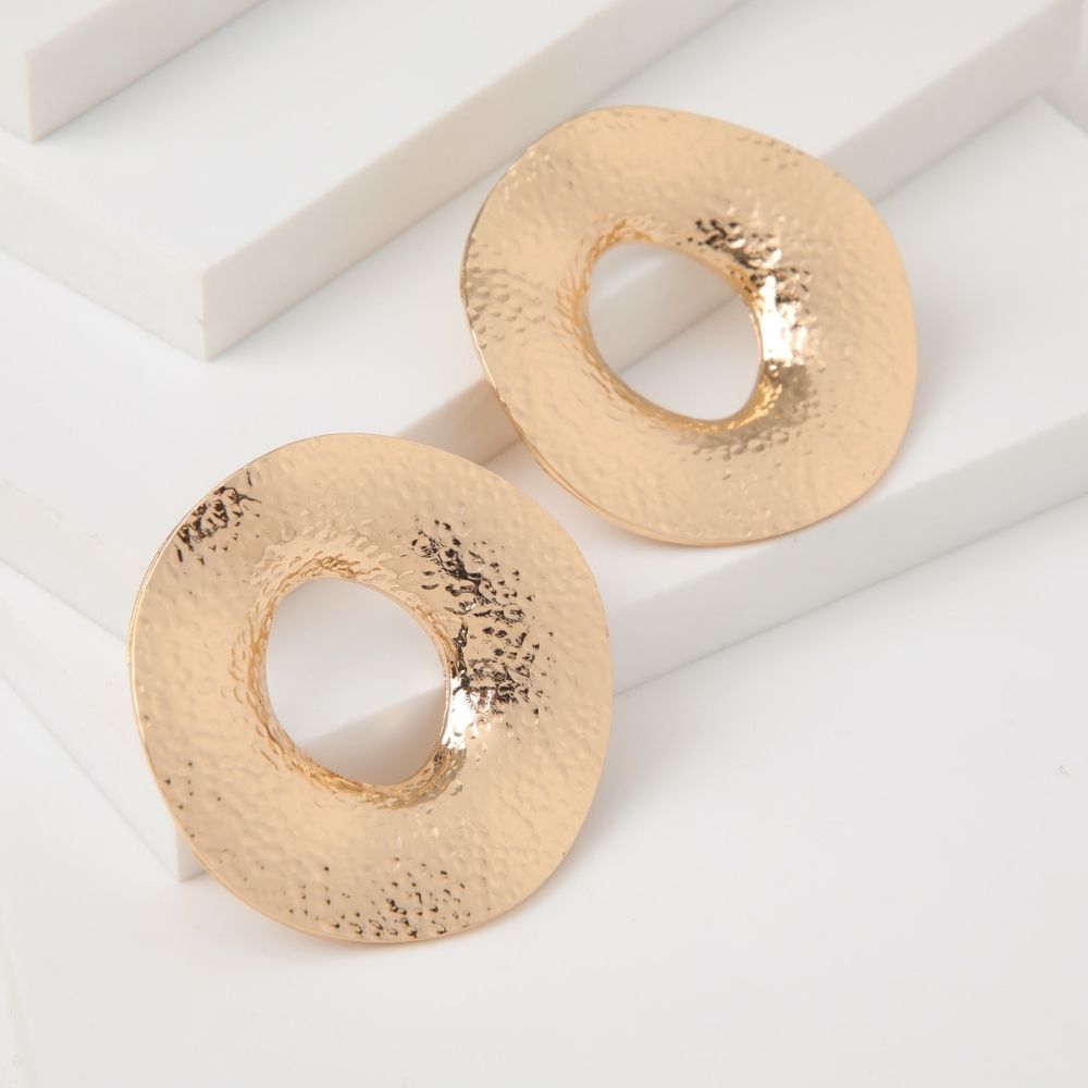 Aro grande pegado de circunferencia dorada irregular con textura tipo machacado.