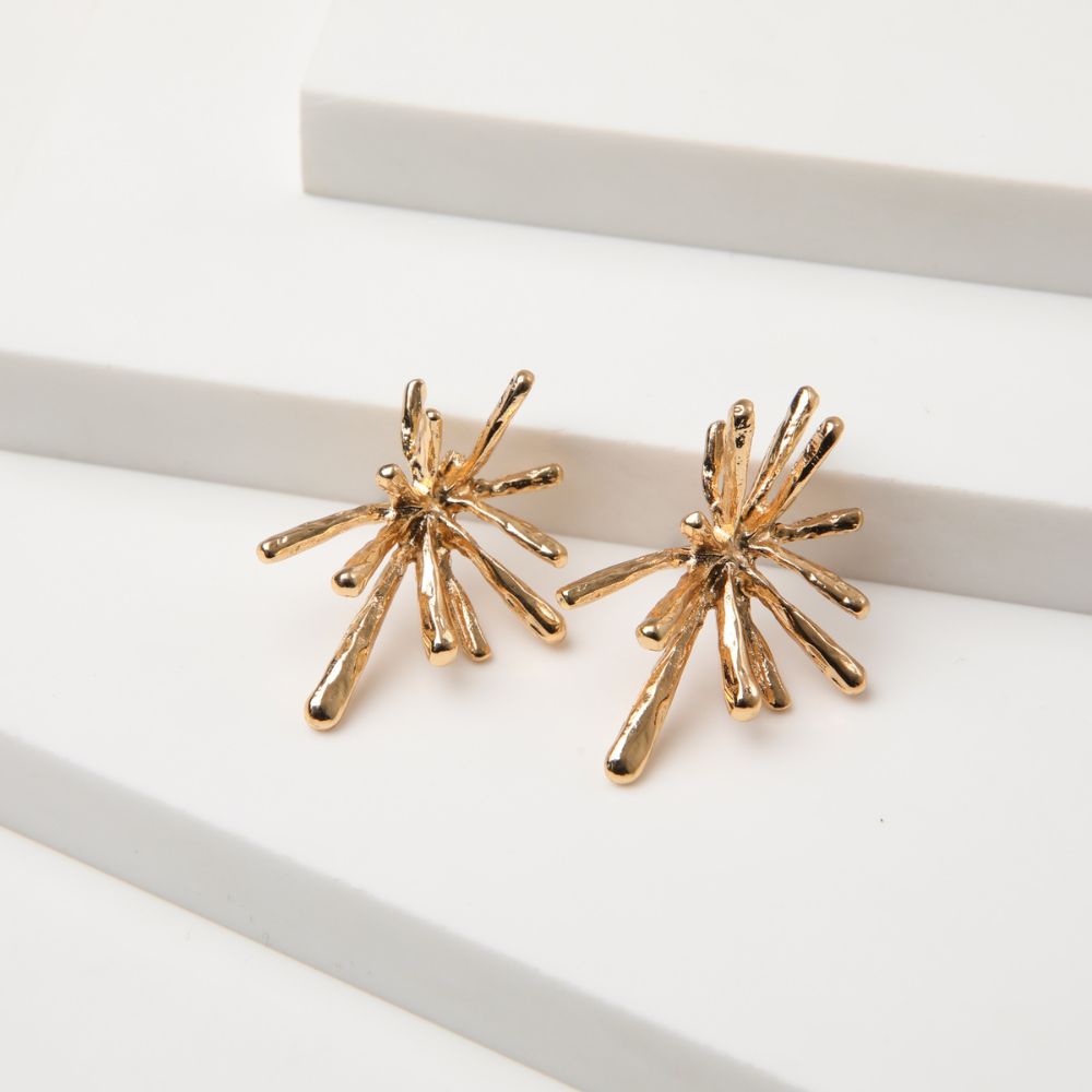 Aros pegados dorados de figura compuesta por puntas irregulares.
