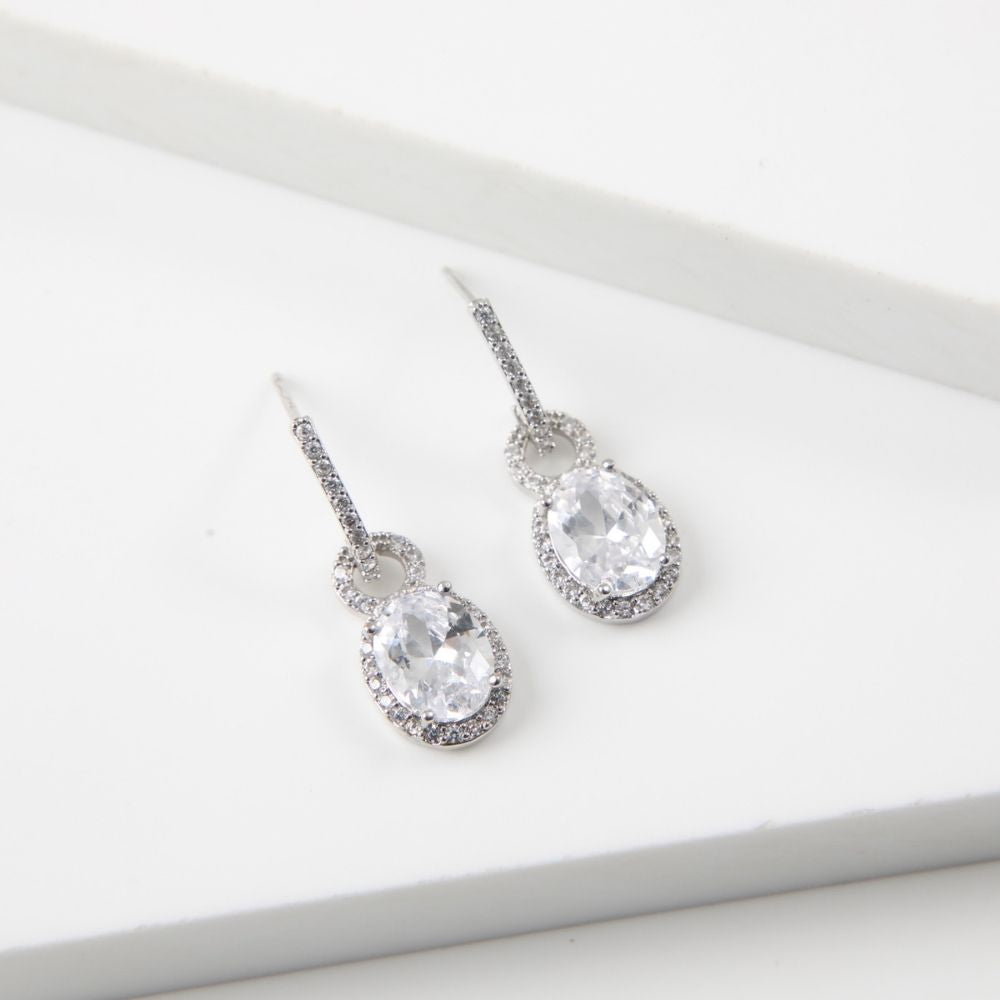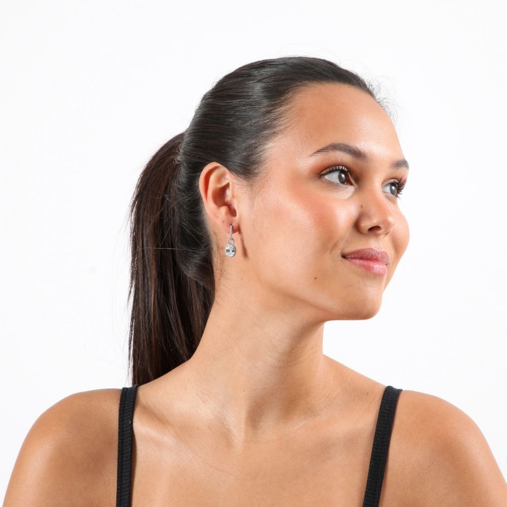 Aros Pegado Con Colgante Ovalado De Brillante De Fantasía.