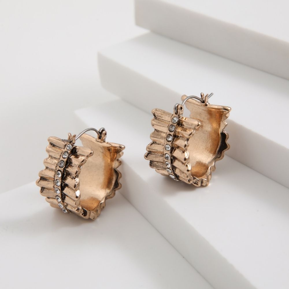 Aros Tipo Argolla Irregulares Con Brillantes De Fantasía En El Centro.