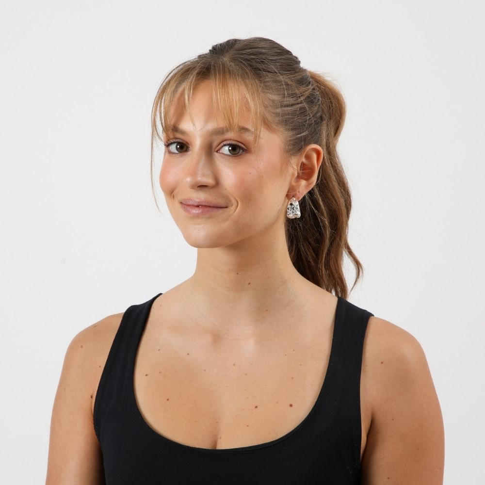 Argollas Anchas En Metal Plateado Con Textura Irregular Y Brillante De Fantasía Negro.