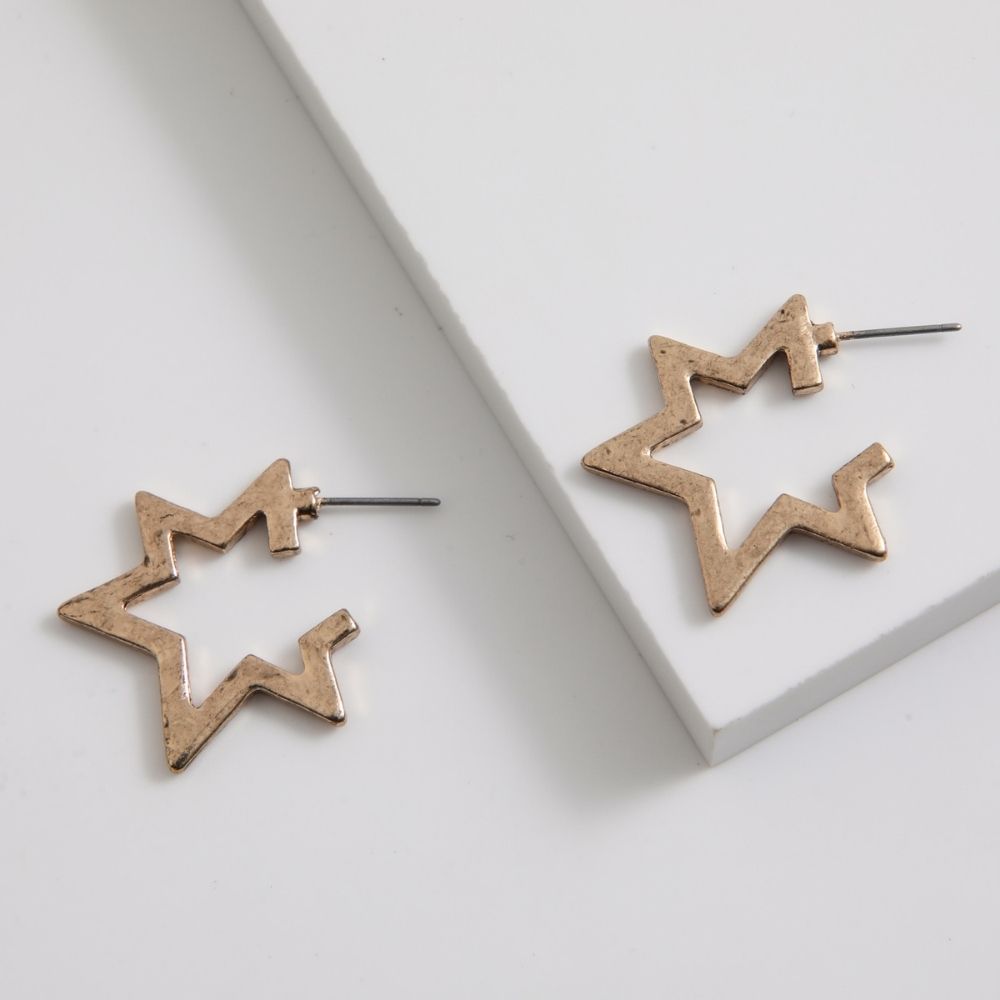 Aros Dorados Tipo Argolla En Forma De Estrella.