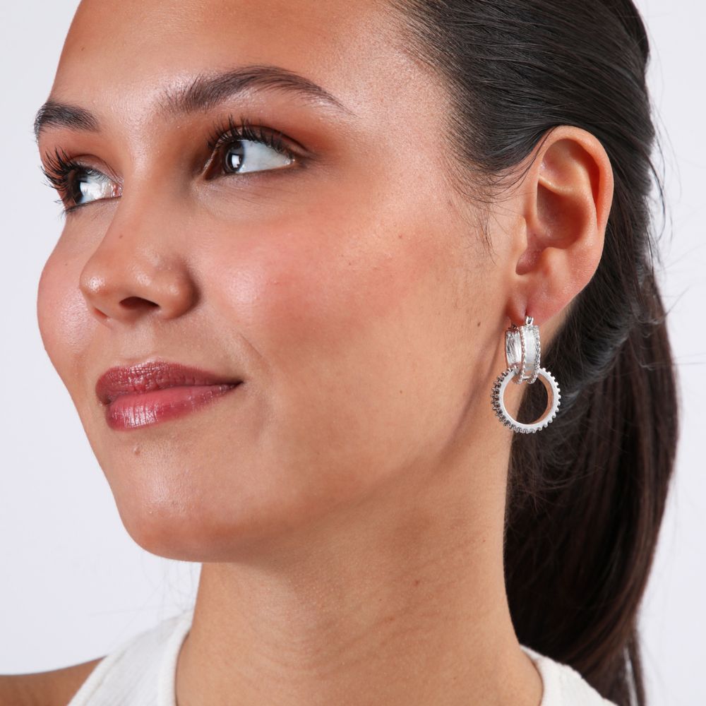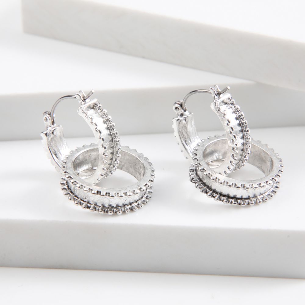 Aros tipo argolla plateado compuesto por dos argollas que se entrecruzan.
